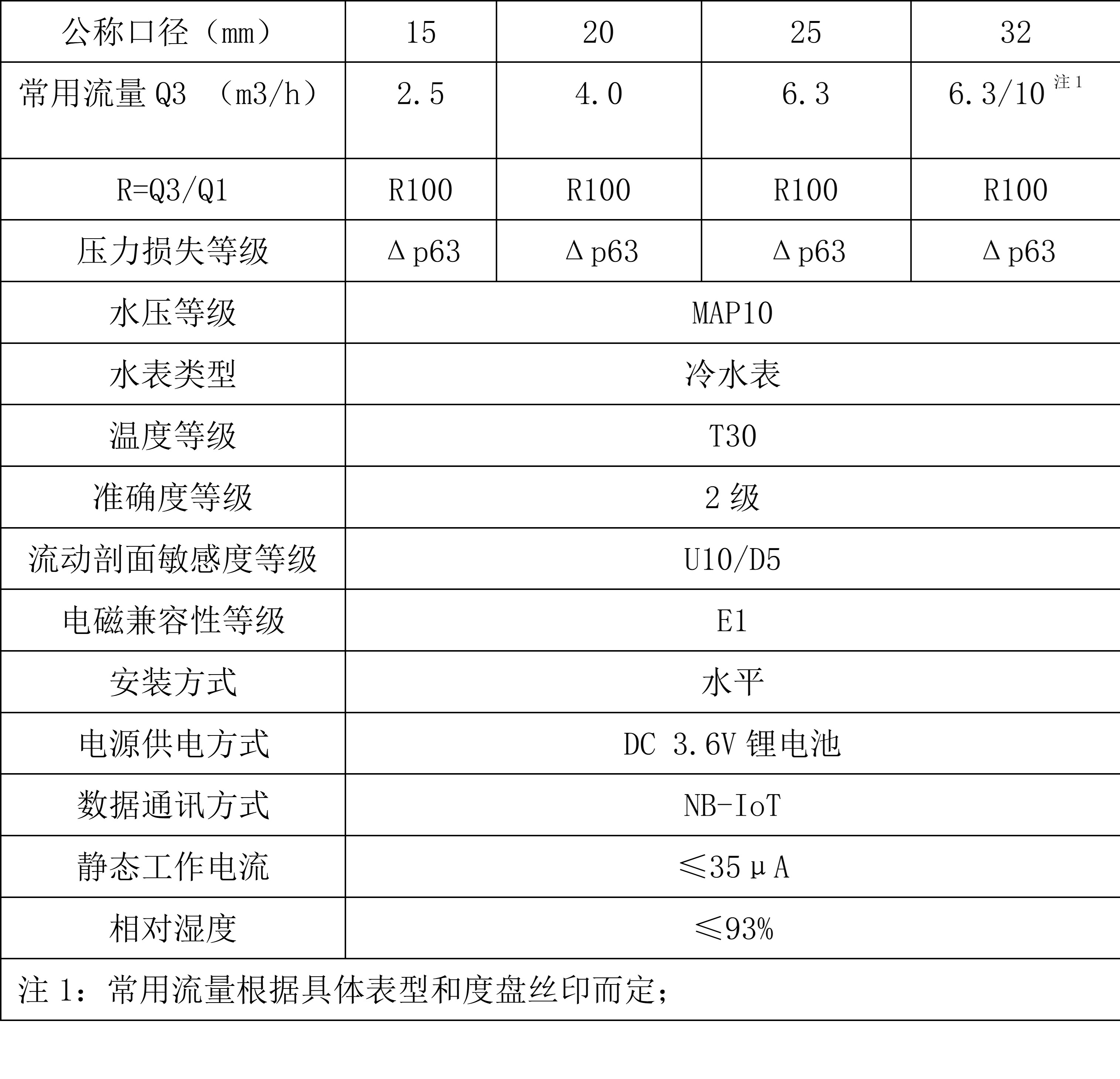 1 選擇水表口徑,應根據用水量的大小以接近常用流量為宜。工作條件: a)流量范圍Q1~Q4;b)計量介質溫度:冷水表為0.1℃ ~40℃;c) 水壓:0.03MPa~1.0MPa,水表禁止通入帶有腐蝕性的液體。